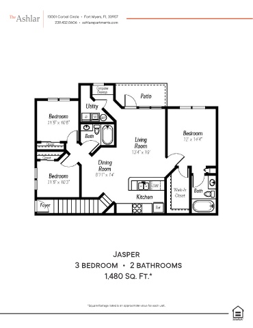 13001 Corbel Circle • Fort Myers, FL 33907 239.432.0606 • ashlarapartments.com Jasper 3 bedroom • 2 bathrooms 1,480 Sq. Ft.* *Square footage listed is an approximate value for each unit.