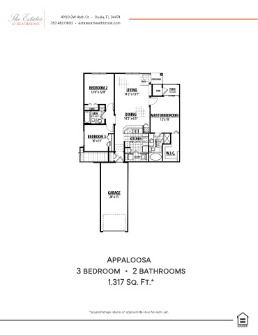 4900 SW 46th Ct • Ocala, FL 34474 352.482.0802 • estatesatheathbrook.com Appaloosa 3 bedroom • 2 bathrooms 1,317 Sq. Ft.* *Square footage listed is an approximate value for each unit.