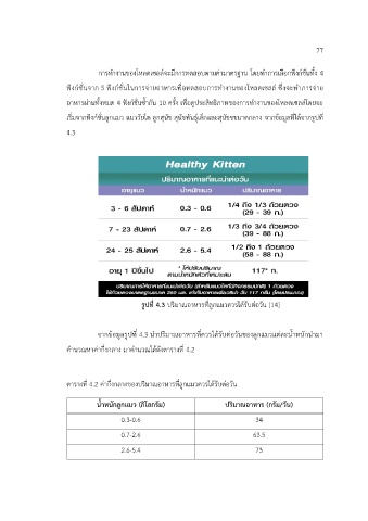 ตารางที่ 4.2 ค่ากึ่งกลางของปริมาณอาหารที่ลูกแมวควรได้รับต่อวัน