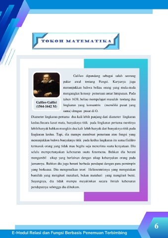 menunjukkan bahwa banyaknya titik pada kedua lingkaran itu sama.Galileo