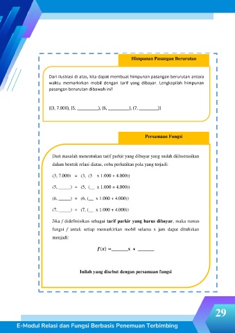 waktu memarkirkan mobil dengan tarif yang dibayar. Lengkapilah himpunan