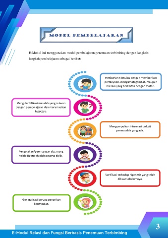 E-Modul ini menggunakan model pembelajaran penemuan terbimbing dengan langkah-