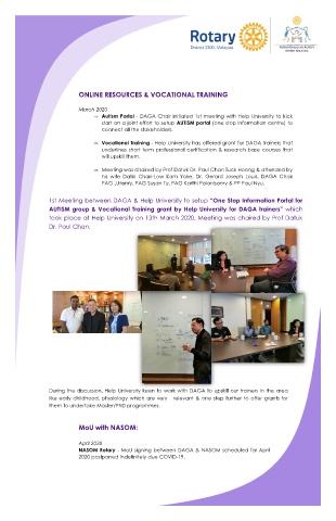 Autism Portal - DAGA Chair initiated 1st meeting with Help University to kick
