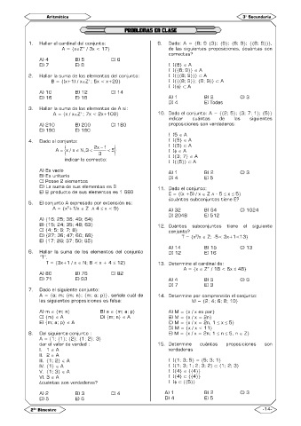 T = {3x+1 / x N; 8 < x + 4 12} 13. Determine el cardinal de: