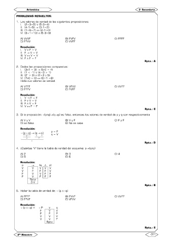 3. Si la proposición: (p∧q)(qp) es falsa, entonces los valores de verdad de p y q son respectivamente