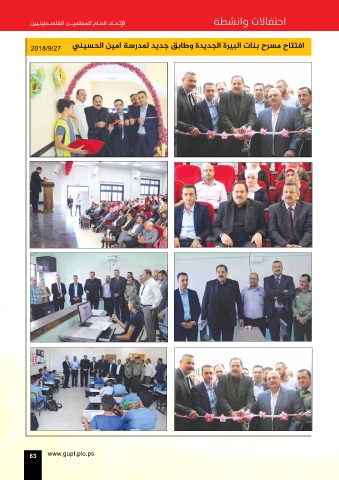 الإتحـاد العـام للمعلميــن الفلسـطينيين احتفالات وانشطة افتتاح مسرح بنات البيرة الجديدة وطابق جديد لمدرسة امين الحسيني 2018/9/27 63 www.gupt.plo.ps