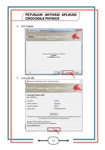 PETUNJUK AKTIVASI APLIKASI CROCODILE PHYSICS 4. Klik Finish. 5. Lalu klik Ok. 13