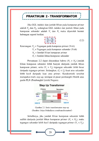 kumparan primer, serta (V > V ) tegangan sekunder lebih besar