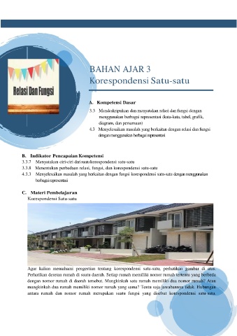 antara rumah dan nomor rumah merupakan suatu fungsi yang disebut korespondensi satu-satu.