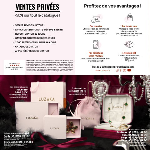 de retour produit. Conditions au dos du catalogue et sur Luzaka.com.