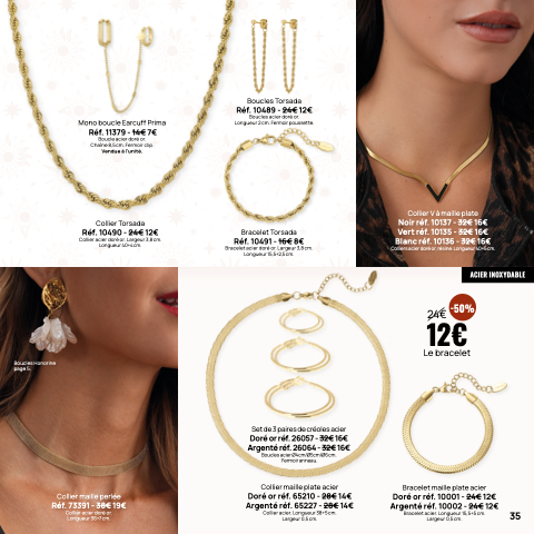 Colliers acier doré or, résine. Longueur 40+5 cm.
