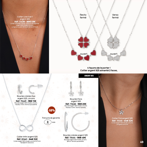 Collier argent 925 rhodié, zircons 40+5 cm.
