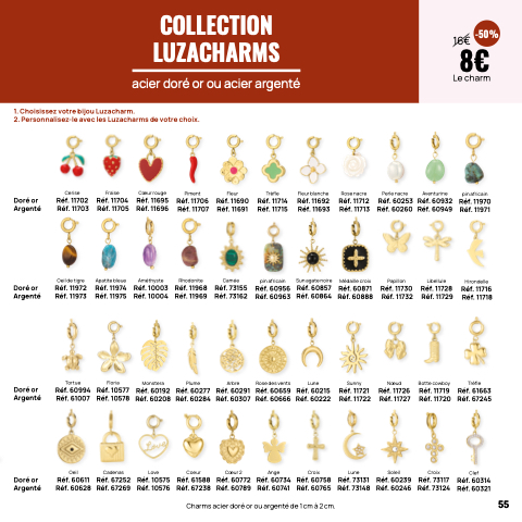 Charms acier doré or ou argenté de 1 cm à 2 cm.