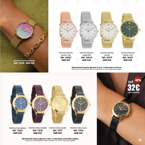 Mécanisme Quartz garanti 2 ans. Livrée dans un écrin.