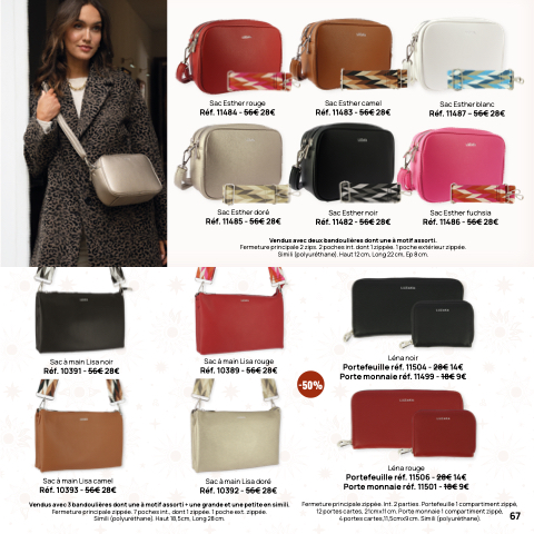 Vendus avec 3 bandoulières dont une à motif assorti + une grande et une petite en simili.