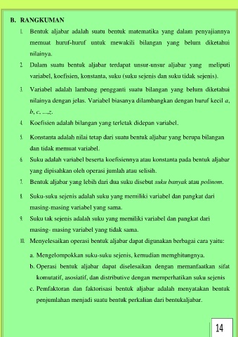 variabel, koefisien, konstanta, suku (suku sejenis dan suku tidak sejenis).