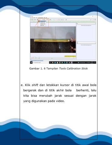 Gambar 1. 6 Tampilan Tools Calibration Stick e. Klik shift dan letakkan kursor di titik awal bola bergerak dan di titik akhir bola berhenti, lalu kita bisa merubah jarak sesuai dengan jarak yang digunakan pada video. 19