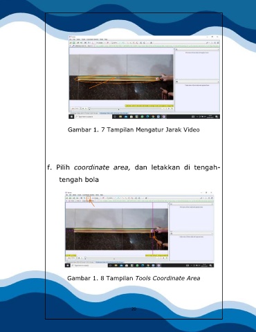 Gambar 1. 7 Tampilan Mengatur Jarak Video f. Pilih coordinate area, dan letakkan di tengah- tengah bola Gambar 1. 8 Tampilan Tools Coordinate Area 20