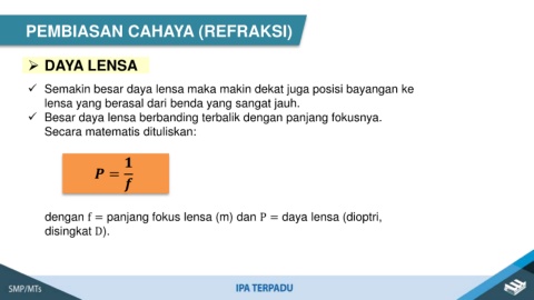 Besar daya lensa berbanding terbalik dengan panjang fokusnya.