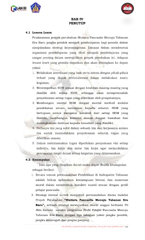 Pelaksanaan proyek perubahan Mutiara Pancasila Menuju Tabanan