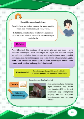kemiringan atap. Kemiringan pada garis lurus disebut sebagai gradien. Jadi ,