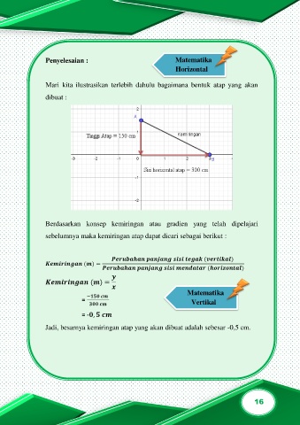Jadi, besarnya kemiringan atap yang akan dibuat adalah sebesar -0,5 cm.