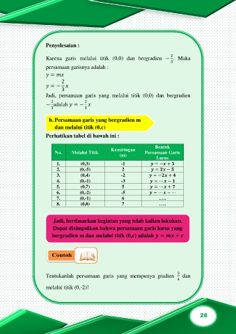 Jadi,  persamaan  garis  yang  melalui  titik  (0,0)  dan  bergradien