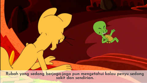 Rubah yang sedang berjaga-jaga pun mengetahui kalau penyu sedang sakit dan sendirian.