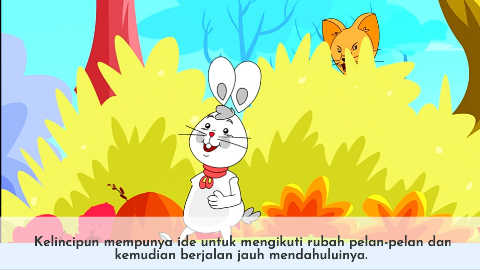Kelincipun mempunya ide untuk mengikuti rubah pelan-pelan dan kemudian berjalan jauh mendahuluinya.