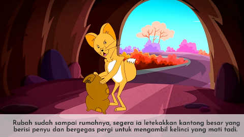 Rubah sudah sampai rumahnya, segera ia letekakkan kantong besar yang