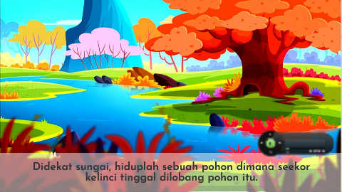 Didekat sungai, hiduplah sebuah pohon dimana seekor kelinci tinggal dilobang pohon itu.