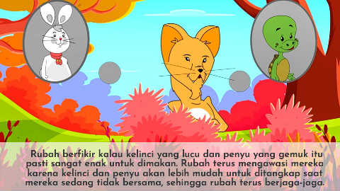 Rubah berfikir kalau kelinci yang lucu dan penyu yang gemuk itu