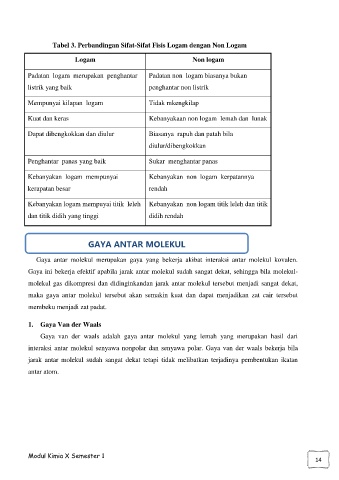 Tabel 3. Perbandingan Sifat-Sifat Fisis Logam dengan Non Logam