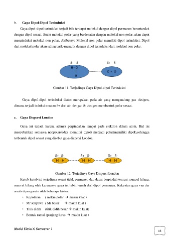 dengan dipol sesaat. Suatu molekul polar yang berdekatan dengan molekul non polar, akan dapat