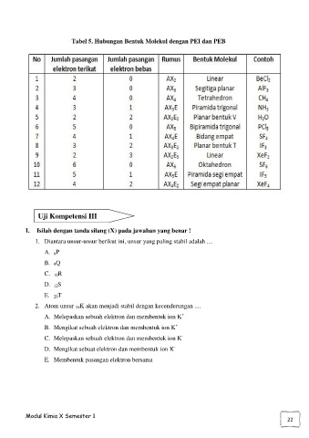 Tabel 5. Hubungan Bentuk Molekul dengan PEI dan PEB