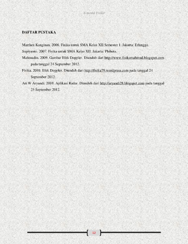 Marthen Kanginan. 2006. Fisika untuk SMA Kelas XII Semester 1. Jakarta: Erlangga.