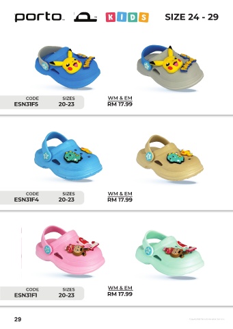 SIZE 24 - 29 CODE SIZES WM & EM ESN31F5 20-23 RM 17.99 CODE SIZES WM & EM ESN31F4 20-23 RM 17.99 CODE SIZES WM & EM ESN31F1 20-23 RM 17.99 29 Copyright@Resta Enterprise Sdn bhd