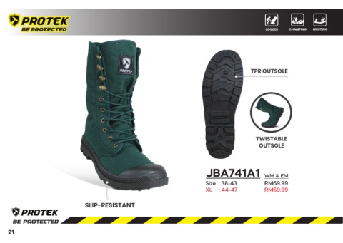 LOGGER CHAMPING HUNTING TPR OUTSOLE TWISTABLE OUTSOLE JBA741A1 WM & EM Size : 38-43 RM69.99 XL : 44-47 RM69.99 SLIP-RESISTANT 21