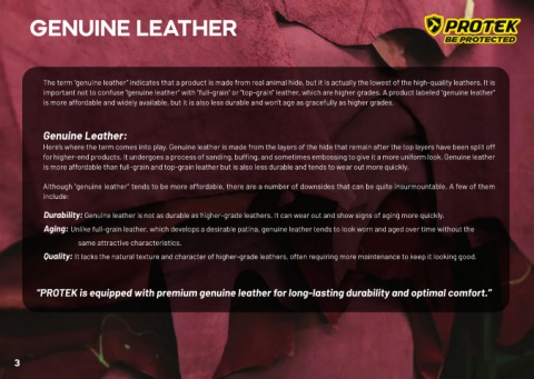 “PROTEK is equipped with premium genuine leather for long-lasting durability and optimal comfort.”