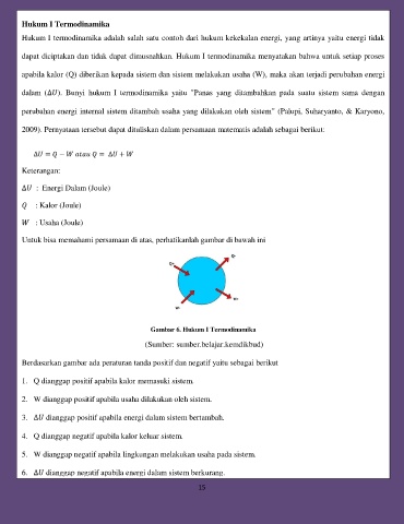 dapat diciptakan dan tidak dapat dimusnahkan. Hukum I termodinamika menyatakan bahwa untuk setiap proses