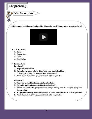 4. Tumpahkanlah baking soda di dalam balon ke dalam balon yang sudah terisi dengan cuka