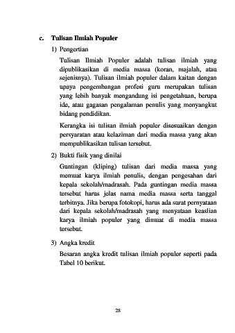 Besaran angka kredit tulisan ilmiah populer seperti pada
