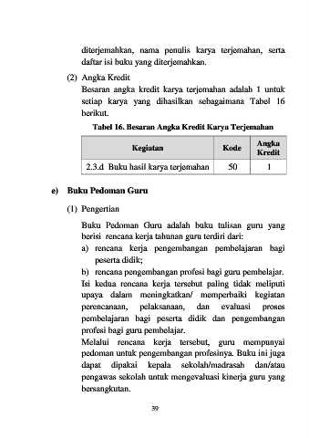 Tabel 16. Besaran Angka Kredit Karya Terjemahan