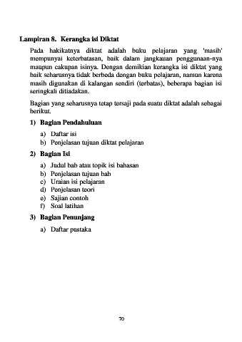 maupun cakupan isinya. Dengan demikian kerangka isi diktat yang
