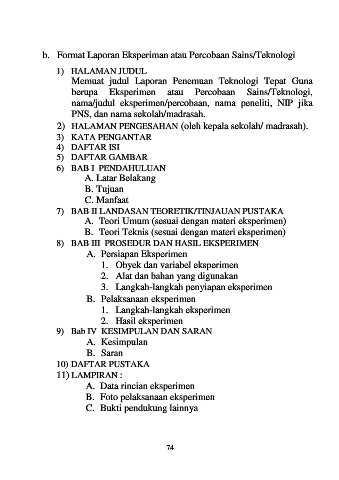 b. Format Laporan Eksperiman atau Percobaan Sains/Teknologi