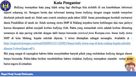 diseluruh pelosok tanah air. Salah satu contoh misalnya pada tahun 2020 kasus perundungan kembali mewarnai