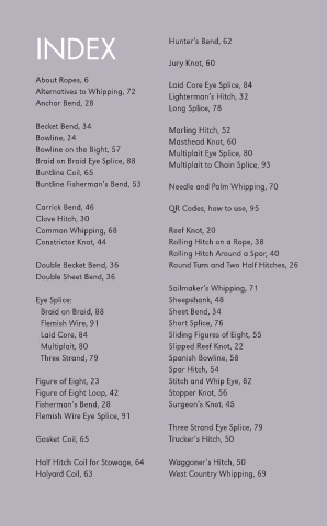 Constrictor Knot, 44 Rolling Hitch on a Rope, 38