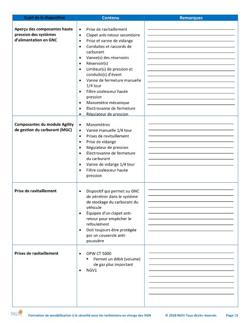Formation de sensibilisation à la sécurité pour les techniciens en charge des VGN © 2018 NGVi Tous droits réservés Page 13