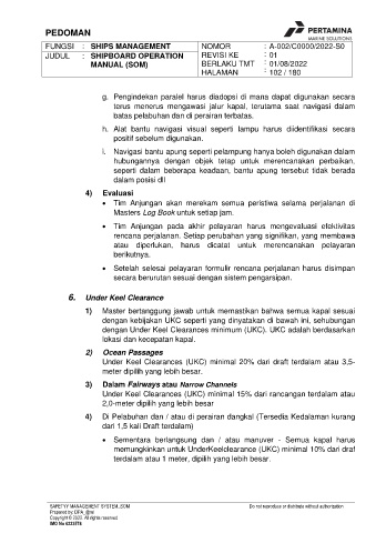 Under Keel Clearances (UKC) minimal 20% dari draft terdalam atau 3,5-