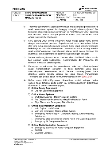 membahayakan keselamatan kapal. Semua critical-equipment harus